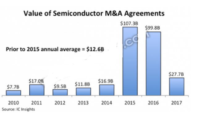 半导体并购活动在2019年的总额同比增长22%,达到317亿美元。