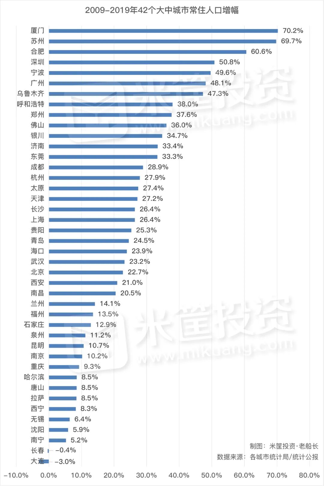 在上篇文章《42城硬实力PK!这个城市意外夺冠!》中,我分析了过去10年42个大中城市的硬实力增长,合肥、贵阳、拉萨成为增长最快的城市。