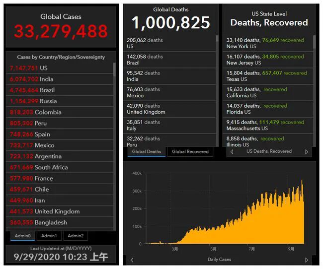 Covid-19,一种新型冠状病毒,给这个世界带来了巨大灾难,全世界几乎所有国家都经历了这场灾难,九个月来,我们听到最多的词是:新冠病毒,感染者,死亡!联合国秘书长古特雷斯在一则声明中说,“我们的世界已经达到一个可怕的界线:新冠病毒疫情带走了100万人的生命。这是一个令人震惊的数字。病毒传播、失业、动荡还没有看到尽头。”世界卫生组织官员表示,真实的死亡数字更高。这是一场突如其来的巨大灾难,让全人类猝不及防,不到十个月,已有3330万人感染,100万人死亡,让人最不能理解的是,世界上经济最发达、科技和医疗最先进的美国的感染人数超过736万,死亡人数超过20万。全球死亡人数前十位依次是:美国20.5万,巴西14.2万,印度9.55万,墨西哥7.6万,英国4.2万,意大利3.58万,秘鲁3.2万,法国3.17万,西班牙3.14万,伊朗2.57万。在这场灾难中,一些国家在隔离与自由之间进行艰难的选择,一些国家在经济重启与全面隔离之间进行艰难的选择,更有一些国家在戴口罩与不戴口罩之间进行艰难的选择,科学在西方发达国家变成了一地鸡毛,民主更是成了无知无智无耻的代名词。生命如秋天的落叶般飘零,无可奈何又充满忧伤。100万个家庭失去了亲人,被病毒所感染3330万人承受着身体、心理与情感的巨大创痛。全球经济遭遇重挫,飞机停飞,火车停运,工厂停工,商店停业,工人失业,全球经济受到沉重打击,世界从来没有像2020年这样互相封闭隔离,人与人之间也没有像2020年一样互相戒备。科学大国英国率先实行全民免疫,结果首相被感染,整个国家至今仍在一波接一波的疫情中挣扎,而被称为“山巅之城”和“灯塔之国”的美国总统号召全美人民不戴口罩,指示民众用针管将消毒水打进身体杀毒,结果美国成了全球感染人数和死亡人类最多的国家,特朗普甚至还在吹嘘美国政府是世界上抗击疫情最成功的国家,为了竞选的需要,他可以不顾民众可能被感染的风险而组织竞选集会,整个西方世界在这场疫情中让我们感受最深的是无耻与反智。在这场疫情中大家都成了哲学家,不断地问:你是谁?你从哪里来?你到哪里去?然而大家问得最多的仍然是病毒从哪里来?这场疫情会发展成什么样?人类能够战胜新冠病毒吗?病毒从哪里来,是美国生物研究室制造的生物武器还是来自大自然?或许未来会揭示真相,或许永远不会有真相。100万,超过朝鲜战争、越南战争、海湾战争、伊拉克战争、阿富汗战争死亡人数的总和。毫无疑问,这是人类历史上的一场巨大灾难。可令人奇怪的是,现在无论是美国、欧洲还是印度,大家对死亡已经麻木,没有人谈论死亡,也没有媒体再关注和报道死亡,几乎所有人都开始麻木,当全世界都开始对死亡表现得如此冷漠的时候,我对人类的未来感到忧虑。当灾难还在持续的时候,人们就开始遗忘,当有人因病毒感染死亡时,人们已经不再关心他是谁,他去了哪里,美国人更关心特朗普和拜登这两个狠毒的糟老头谁会当选总统,印度人则关心他们的中印边境冲突,还在幻想着对中国发动一场复仇之战。在这场疫情中,美国资本泛滥,资本家狂欢,而普通平民则陷入了巨大的无法逃脱的困境。人类或许就是一个自私、冷漠的生物族群,这个自认为拥有最先进文明、掌握着最先进科学的生物族群,或许是所有生物中最无耻最无情的生物族群。虽然我相信人类终究会战胜疫情,但美国等西方国家在这场疫情中表现出来的反智、丑陋和无耻,美国在疫情中对中国的造谣、甩锅、抹黑、污蔑,让我们深感愤怒。中国在这场疫情中显示出了政府强大的组织动员能力,尽管在疫情初期出现了短暂的混乱,但当整个国家和社会被组织和动员起来之后,中国显示出了制度的巨大优势,在最早出现、毫无科学和心理准备的情况下,果断实施武汉封城和全面隔离,成为了世界上唯一一个取得全面战胜疫情的国家,当各国仍在为已经爆发的第二波、第三波疫情惶恐不安的时候,中国已经有近50天没有出现本土病例,是全球最安全的国家。100万,这既是一个可怕的数字,更是无数生命组成的记忆,你还记得那些曾经在你身边生活和工作却因被病毒感染而突然消逝了的亲人和朋友吗?你还在为出门戴不戴口罩而纠结吗?你还在问病毒来自哪里,这场疫情将会持续多长时间吗?这一刻,人类感到迷茫,人生如此短暂,生命如此脆弱,我们却如此不懂得珍惜和珍爱生命,当100万人被一场疫情吞噬的时候,我们该如何深刻反思?