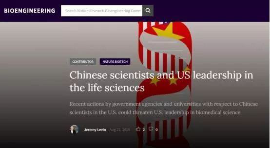 8月21日,美国奥维德医疗公司首席执行官杰里米·莱文在“自然研究生物工程社区”网站发布一则声明称,“美国政府机构和高校最近针对中国和华裔科学家采取的种种行动,可能会威胁到美国在生物医学领域的领导地位,将损害美国自身国家利益。”