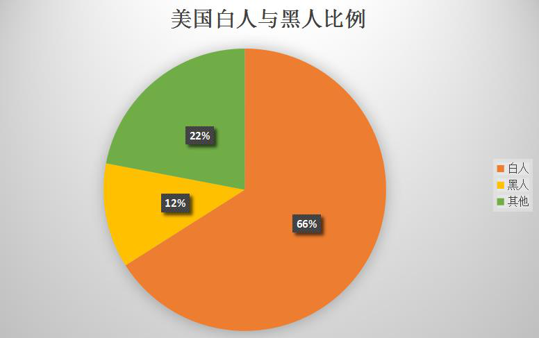 美国黑人在人口数量上占有一定比例,但也不是特别夸张。截止到2019年12月,美国人口约3.30亿,其中非拉美裔白人约占62.1%,拉美裔约占16.9%,非洲裔约占13.4%。美国的50个州和1个特区里,黑人人口占比超过全国平均水平的有17个。