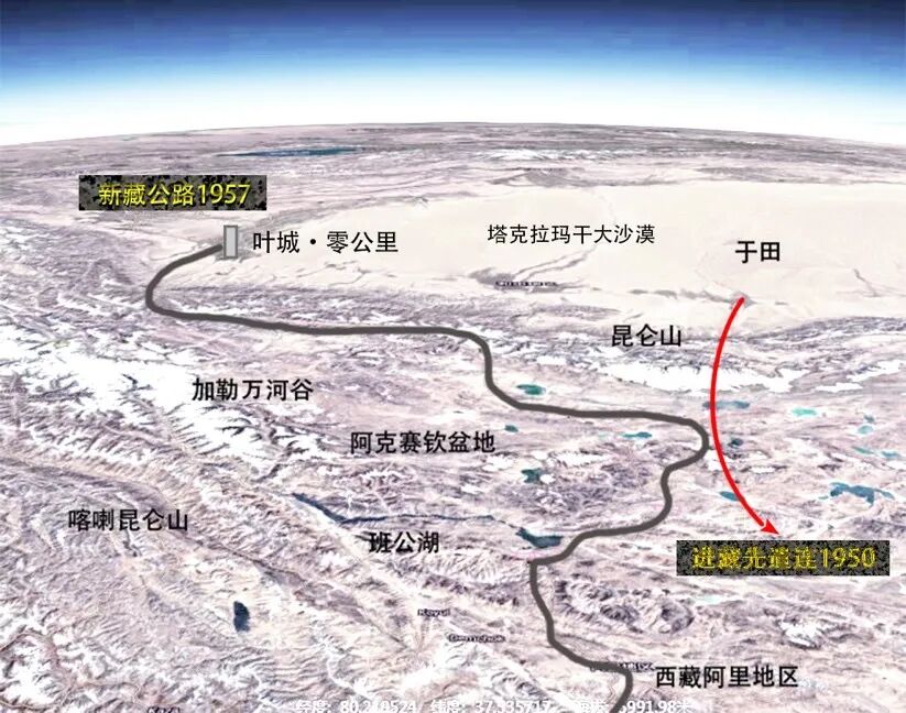 1958年,印度发现中国出版的地图上标注了一条新公路,这条路从新疆叶城零公里开始,钻进昆仑山,穿过阿克赛钦盆地,翻过新疆西藏交界处的界山达坂,绕着班公湖直抵阿里首府。