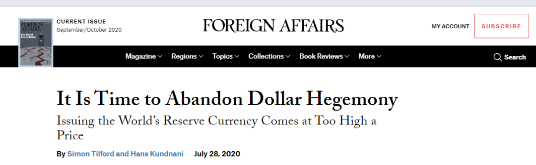 这篇稿子发布于2020年9月28日的《外交》杂志上,这个杂志是美国外交关系协会的官方杂志,外交关系协会是美国最有影响力的外交政策智库。