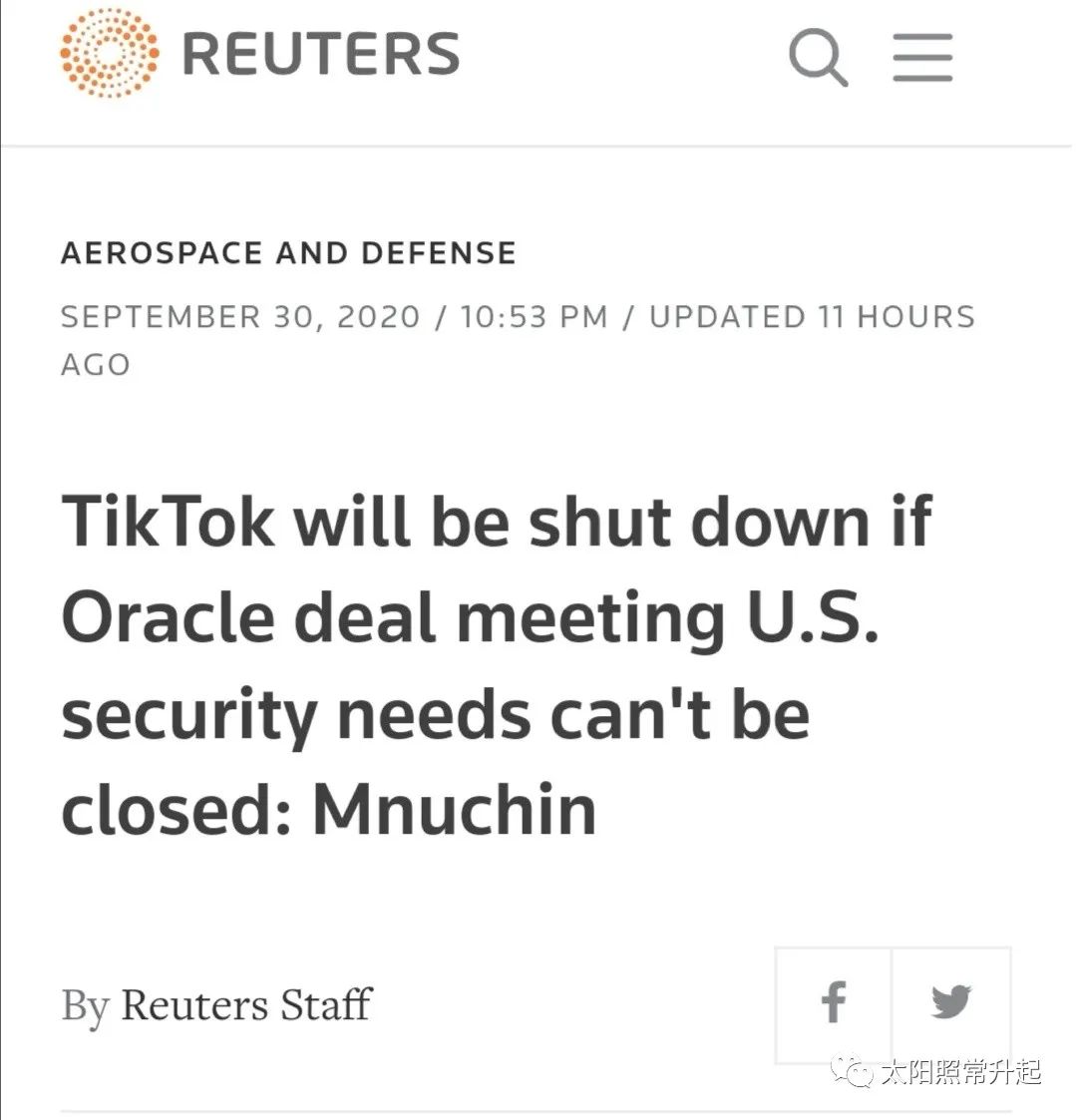 在中国人民喜迎双节之际,美国政府也没有闲着。Bloomberg报道,美国财政部长姆努钦表示,如果TikTok的交易不能满足美国的安全要求,那TikTok在美国最终将被关闭。