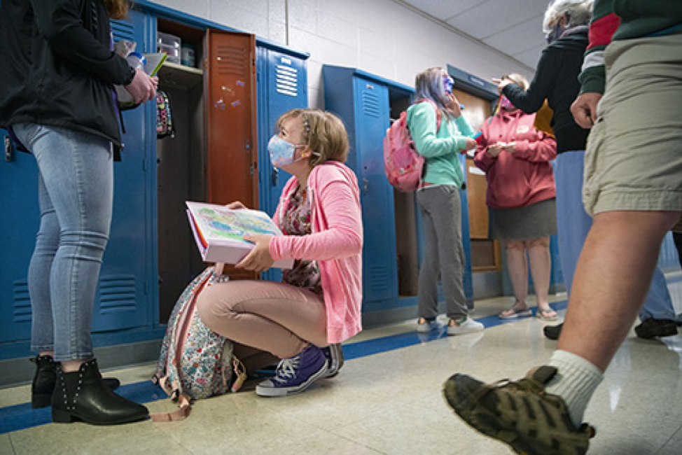 2020年9月8日,在美国明尼苏达州卡尔顿,学生戴着口罩复课。
