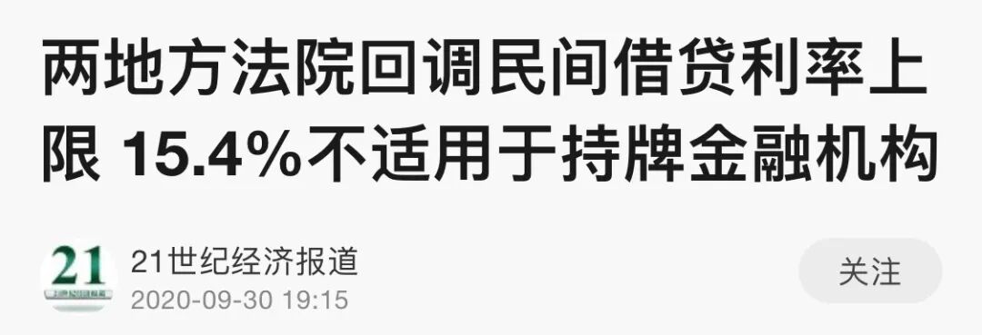 ▲图源:IT时报一时之间,持牌机构的压力很大。据媒体报道,有股份制银行信用卡部门,将信用卡套现年利率从18%降至15.4%以内;也有一家城商行将助贷业务的年利率上限,从20%降至15.4%。9月初,浙江温州瓯海区人民法院判决,平安银行温州分行主张年化利率24%被驳回,债务人只需承担15.4%的利息。为此,中国小额贷款公司协会印发通知,号召小贷全行业开展利率定价大讨论。该协会在通知里强调——要向外界传达明确信息,小贷公司是经过批准设立的营利法人,它的放贷不是民间借贷(多么混乱的语义)。由此可见,15.4%给这个行业带来了剧烈恐慌。谁都不知道,持牌机构什么时候开始执行这个利率水平?如果执行这个利率水平,将带来什么后果呢?毫无疑问,是灭顶之灾。
