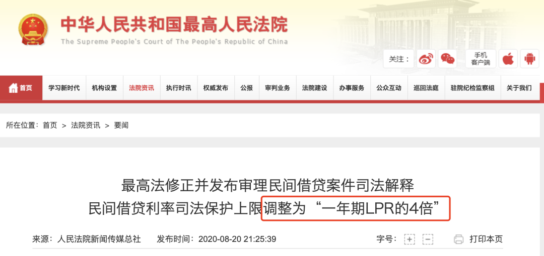 这件事很简单,但它延伸开来,还是有一些很值得讨论的话题。首先要问的是,媒体为何会犯这种低级错误?除了不够严谨,一个重要原因是,这项规定谈的是“民间借贷案件”,却把持牌机构排除出去,逻辑很有问题。持牌机构包括中银消费、中国人保这样的国家金融机构。此外绝大多数是民间金融机构,包括消费金融公司、地方小贷公司,及微粒贷和借呗这样的巨头产品。它们并非官方机构,和个人的借贷纠纷理当是“民间借贷案件”——却被最高法院的规定排除出去,没有查法规的人,确实很难想到。持牌机构的贷款利率不和“民间借贷”同轨,他们不会把利率拉到天上去。自利率市场化改革以后,持牌机构就没有贷款利率的上下限。但持牌机构执行的利率,从来不比“真正的民间借贷”高。原因很简单,持牌机构是国家认可的合法放贷的单位,如果其利率比国家法定“高利贷”还要高,势必造成恶劣影响。具体到现实中来说。8月20日新规出台之前,民间借贷利率一直执行“两线三区”标准:约定利率超过年利率24%,人民法院不予保护;