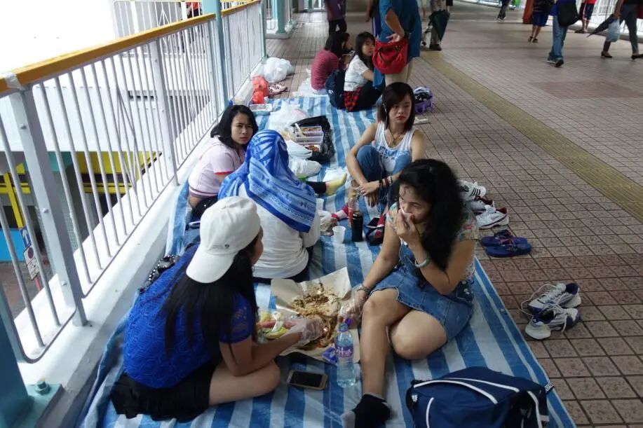 ☉每到周末,菲佣就会聚集在香港街头,也是一道“景观”