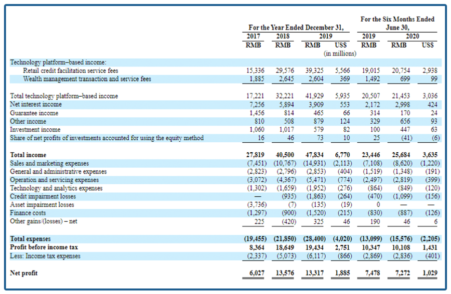 即使是在2020年上半年,陆金所控股的总收入也达到了256.8亿,净利润72.7亿;考虑到2017年到2019年达48.65%的净利复合增长率,这算是一以贯之的优良传统了。