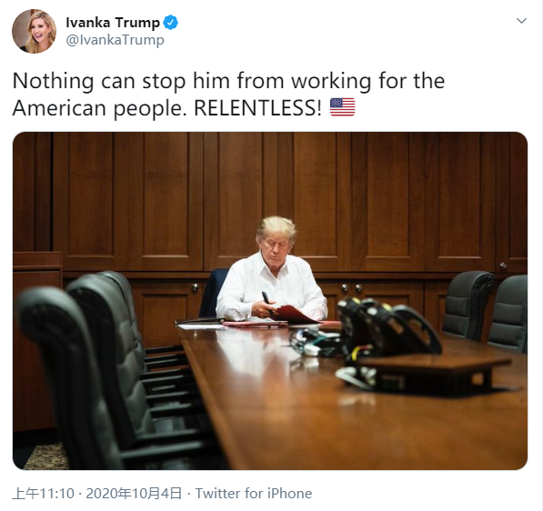撒谎造假对于特朗普来讲是家常便饭。他住院后,他的女儿、幕僚纷纷发推特,上照片,照片上特朗普穿着大白褂,坐在不同的桌子前,在签字。配的文字是:“没有任何事情可以阻止他为美国人民工作”“生病依然不忘为人民服务”等等。然而仔细看,会发现这些不同的照片是在十分钟内一起拍完的。放大了看,他签字的那张纸是一张白纸。还有,他的视频有明显的剪辑痕迹,剪去了咳嗽。