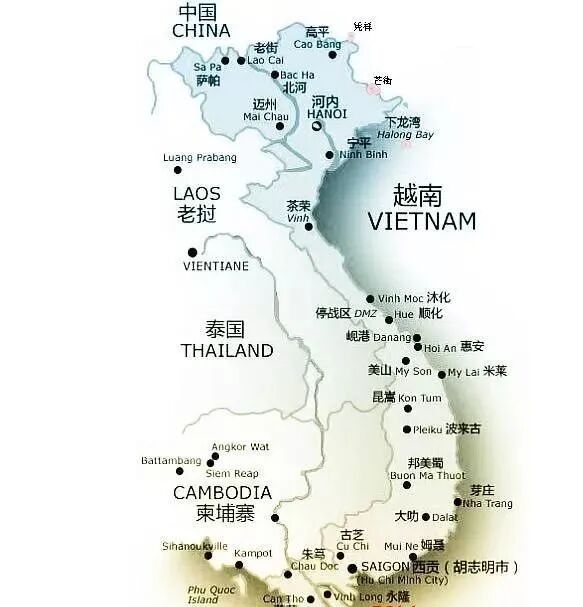 党内几个大佬凑一起讨论了下,觉得如果来个速战速决快进快出,苏联不一定能反应过来,毕竟苏联重心在欧洲。前边也反复提了,苏联欧洲部分和亚洲的沟通主要靠西伯利亚大铁路,这条上万公里的大动脉,火车在上边时速差不多三、四十公里每小时,比骑自行车快点;如果在东方和拥有核弹氢弹洲际导弹的中国打一场百万人级别的大战,苏联也得准备半年多。算计清楚之后,邓公就开始部署了。大家都知道,1975年美国不是在越南丛林中混不下去了嘛,就走了,临走给南越留了几十个师的美式装备。美国走了没多久,北越动员了全部的力量近30万人冲向南越。全副美式装备近百万的南越军队,不堪一击迅速崩溃了。当时南越的情形,有点像中国1949年的百万雄师渡大江的消息传遍南方后,地主财阀们发了疯似的向国外逃窜。1975年年底的南越,首都西贡陷落,大批南越人出逃,电影《决战英伦》里的关玉民就是南越特种部队的,自然也得跑,逃跑途中媳妇被打死了,背景就是这次大决战。北越灭掉南越之后非常冲动,准备从一个胜利走向另一个胜利,瞄准了柬埔寨,随后就去打柬埔寨了。看地图,越南地形就跟个勺子似的,柬埔寨在最南边:
