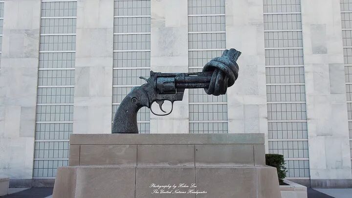 矗立在联合国总部花园内的“打结的手枪”(图源:网络)