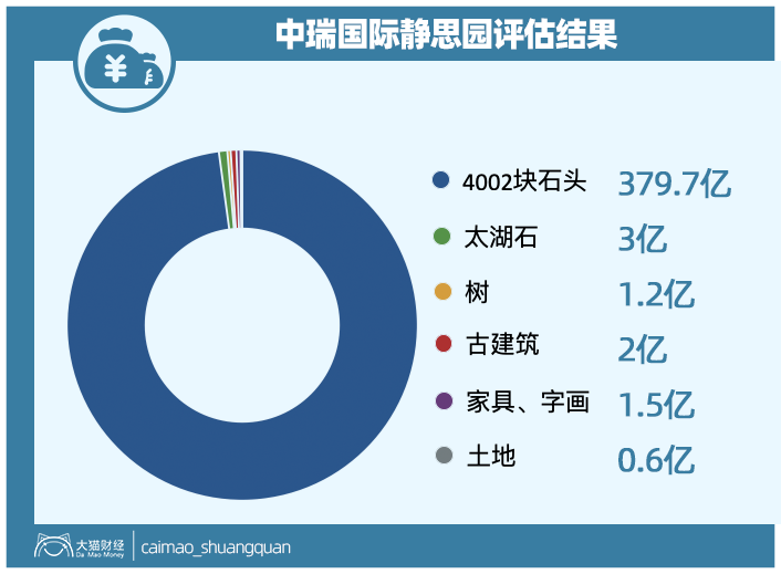 但是这钱来得快,去得也快。后来陈金根资金紧张,十分缺钱,不得已将静思园整体打包4.5亿卖给了中青旅实业。前面不是说评估价值388.9亿吗?咋4.5亿就卖了?很多人看到中青旅实业,就觉得是那个搞旅游的上市公司中青旅吧?其实,这是两个公司,但是这个买了静思园的中青旅实业也很希望外界混淆这两个公司。在早期的公开报道中,中青旅实业介绍自己是“1993年团中央下属的中国青旅集团投资,经国家工商局核准成立的大型国有企业;产业涉及金融、地产、TMT、贸易、海外投资、行业直投等领域。”从2015年开始,在总经理赵宗辉的带领下,中青旅实业仅仅用了3年多时间,总资产规模就从100亿疯狂增长到了1000多亿,十倍!商界奇才啊!是业务突飞猛进吗?细一看就会发现,就一个套路——借钱,收购资产,抵押再借钱,继续收购资产……不断循环,资产就过千亿了,这其中最重要的工具,就是静思园的那几千块石头。2016年中青旅实业买了静思园之后,又把静思园里头的石头、树、字画、古建筑等以账外资产的方式注入静思园公司,这样就重复计算了收购资产价值。随后,赵宗辉委托中瑞国际资产评估(北京)有限公司来负责给静思园做了个资产评估,中间怎么操作的就不知道了,反正最后的评估价值为388.9亿元,估计陈老板知道了这个价格肠子都得悔青了。