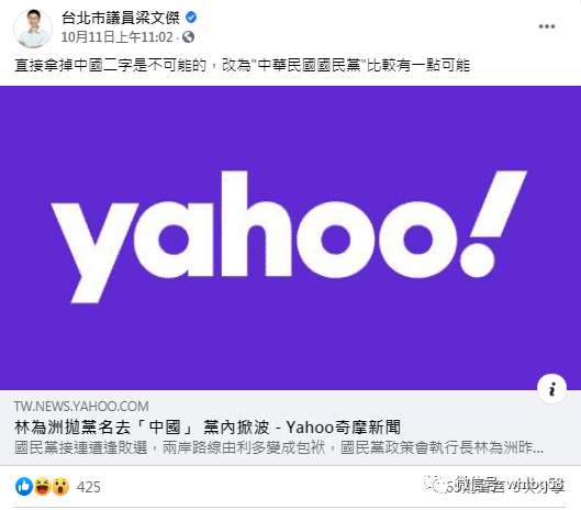 昨天,笔者还在脸书上看到一条信息:民进党台北市议员梁文杰11日在脸书上就国民党改名嘲讽称:“直接拿掉改为中国二字是不可能的,改为‘中华民国国民党’比较有一点可能。”