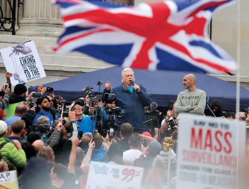 一年前《环球》杂志记者在美国培训,寄住在加州老太太玛丽安家。她每天早晨第一件事就是在视频网站上看名为“Frank 26”的主播更新节目。节目的主要内容是伊拉克货币第纳尔何时重估币值。“Frank 26”在节目里信誓旦旦地说,他在伊拉克政府内部“有人”,第纳尔对美元的官方汇率很快就要重新标定,在现在的基础上大幅升值。玛丽安说,好多朋友都因为看“Frank 26”囤了第纳尔,而且重估币值很快就要发生了。因为常年报道国际财经新闻,深知此事背后的骗局,记者便反复向玛丽安强调“Frank 26”在造谣。但玛丽安仍反复向记者宣告,“Frank 26”说了,之所以各大新闻网站没有报道第纳尔重估币值,完全是因为美国持有第纳尔的富人封锁消息,想要独吞巨额财富。回国告别的时候,玛丽安递给记者一个信封,里面是一张面值25000伊拉克第纳尔的纸币。她语重心长地说,“知道你不信,但是万一呢,到时候真的因为这个富起来,也不枉我们认识一场的交情。”这番情谊虽然令人感动,但更让人忧虑。宁可笃信视频网站上陌生人的忽悠,也不相信权威新闻网站;宁可相信整件事情背后有惊天大阴谋,也不相信常识、理智。究竟是什么让越来越多的民众陷入阴谋论的陷阱呢?9月28日,在英国特拉法加广场,阴谋理论家大卫·伊克在一场集会上发表演讲,该集会的 目的是抗议新冠肺炎疫情的相关限制措施文 | 宿亮 《环球》杂志记者