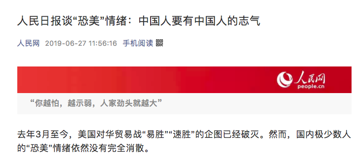 5.人民日报:《谈“恐美”情绪:中国人要有中国人的志气》