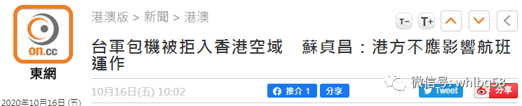 今天(16日)上午10点,香港媒体《东网》报道,一架台当局军方的包机昨天在飞往东沙群岛途中经过香港空域时,遭到香港空管拒绝,只得折返回台。