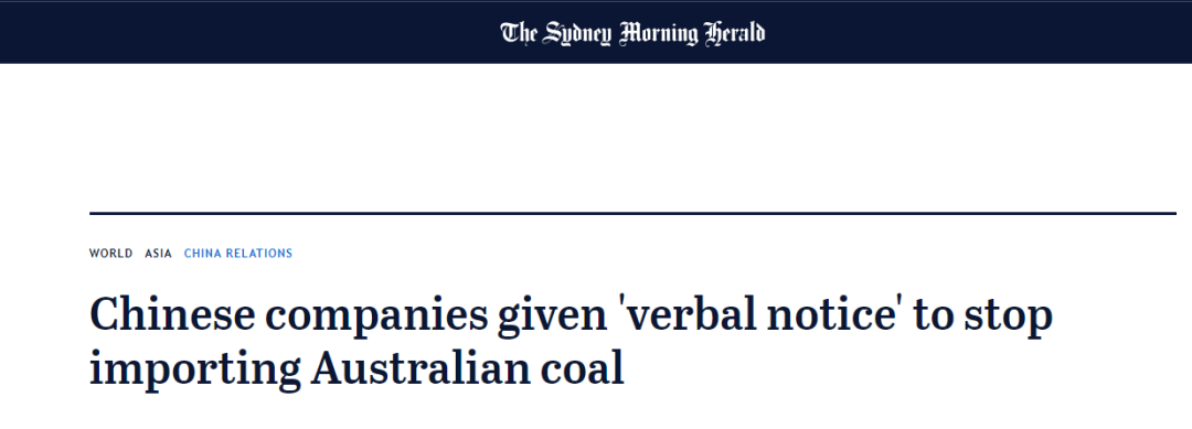下图为澳大利亚先驱早报:《中国公司被口头告知停止进口澳大利亚煤炭》