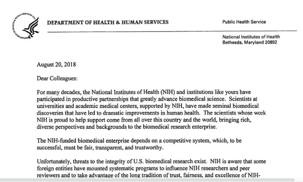 “国立卫生研究院的资助是给机构的,而不是给研究者的,因此提醒你们注意这些问题的严重性。”
