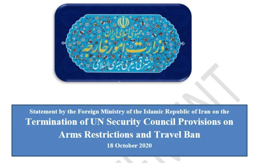 《关于联合国安理会终止有关武器限制和旅行禁令规定的声明》(图源:伊朗外交部官网)