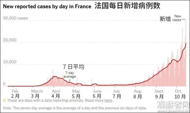 要知道在整个十一期间,青岛接待了447.58万游客,全市进出人流500多万,全青岛,乃至全国的人,心一下子悬了起来。以我所在的北京社区为例,出入小区马上开始检查健康码、公共场所开始限制人流、强制佩戴口罩。而在青岛,短短5天的时间,便完成了1100万人口的核酸检测工作,这个速度,CNN主持人听了都得夸中国牛逼。全员检测的结果一出,发现除了最初确诊的13例外,千万人口无一阳性。这说明这波疫情在源头上就被我们扼杀了,大家提到嗓子眼的心,又跌回了肚子里。青岛安全了,全国也安全了,新冠一走稳如狗,接着奏乐接着舞。我们很多人对欧洲疫情的印象还停留在今年四月份,认为欧洲“疫情得到了有效控制,只不过是收尾的战线拉的长了一点”。这也不怪我们的刻板印象,国内的疫情早就被控制住了,欧洲怎么样关我们屁事儿?再加上美国和印度的表现实在爆表,所以很多人也就忽略了“大局已定”的欧洲疫情。可现在的情况是,欧洲的疫情已经彻底失控了,所有的欧洲主要国家,情况都比半年前更糟、都比二月份的意大利更糟。世卫组织前几天说,欧洲新冠日增死亡病例可能将达到4月高峰时的5倍之多。现在,欧洲的法国、意大利、德国的日增确诊病例均已突破了新的纪录。在短短10天之内,欧洲53个国家的累计确诊病例从600万例暴增至700万例,照这个速度,800万貌似“指日可待”。根据法国卫生部门发布的报告,法国10月14日新增确诊病例22591例、10月15日新增达到破纪录的30621例。看下面这张图,这是从今年2月出现疫情以来,法国每日新增确诊的病例统计。法国疫情在4月份迎来第一波高峰,当时最猛的时候,也不过是每天新增几千例。而现如今,法国每天新增两三万,丝毫看不到有缓和的迹象。面对疫情,欧洲虽然不像美国那样破罐破摔,他们也封城、也宵禁,但力度不够、根本控制不住新冠疫情。如果做不到为了控制疫情而停工停产,那么任何消灭疫情的措施都是隔靴搔痒。在一次次侥幸中重启经济、终究只能迎来新冠病毒的反复毒打。看看中国,当初我们为了控制疫情封城封路、关闭经济,西方媒体说这是限制人权。他们声称中国正在经受切尔诺贝利般的挑战,他们断定中国经济会遭受重创而从此走上下坡路。随着国内疫情的完全控制、复工复产的完全启动,那些疫情之初广为流传的“中国经济崩溃论”、“中国制造业转移论”,越来越变得像个笑话。道理再简单不过,无论是哪个国家,只要疫情控制不住,就甭谈经济增长,哪怕强行复工复产、那也只能遭受新冠疫情的反复屠戮。纵观寰宇,欧美仍在抗击疫情的滑铁卢之战中苦苦挣扎,其他发展中国家与广大欠发达地区更是难见希望。照此发展,中国今年的经济必然会领先全球,说中国是一枝独秀,毫不夸张。经济发展的三驾马车:消费、投资、出口,我们这里主要看消费和出口。从1月份疫情出现开始,社会消费品零售总额增速暴跌触底后一路反弹,在8月份已经出现了0.5个百分点的正向增长。这说明相较于疫情初期,我们的消费意愿和消费能力都大有改善。消费领域里,尤其要关注汽车类消费,因为汽车属于大额消费品,只有在经济状况良好、消费者大有信心时才会去购买。看看9月份的数据,汽车类零售总额达到3866亿元,同比增长11.2%,这也是连续三个月以来的两位数增长。7月份出口额同比增长7.2%、8月9.5%、9月9.9%,这不仅早已恢复到了疫情之前的水平,甚至达到连续18个月以来的最高增速。都说新冠疫情是压垮全球化的最后一根稻草,但数据骗不了人,世界离不开中国,有些国家嘴上说不要,身体却很实诚。在整个第三季度,工业产值同比增长6个百分点,仅就第三季度而言,第二产业是增长最快的。而在汽车、电气机械、钢材、集成电路等领域均达到两位数的高速增长。中国虽然在上半年遭受了疫情的重创,但随着复工复产、各行各业全面全面开动,我们的经济依然稳中向好,消费、出口、工业产值的良好增长就是铁证。GDP的回暖,也有一种反面的声音涌现出来,说“前三季度的GDP增长,是靠央行放水堆起来的”。疫情给整个经济摁下了两个月的熄火键之后,想要帮企业纾困,想要重启经济,必然要提供宽松的流动性支持,必须要给企业贷款,给个人贷款,甚至是政府,为了保持在疫情高压之下的强力运转,哪都需要钱。有信贷,政府、企业、个人的正常运转和复产复工才能推进下去。我在今年2月份的时候就说过,我们今年要忘记GDP,忘记债务,要保的只有中小企业和就业,保住了中小企业,明年的经济才有反弹空间,保住了就业,才是保住了我们整体的经济基本盘。所以我们该批评和担忧的不是杠杆率(负债率)的上升,而是该看债务上升速度和经济回暖的速度,是不是良性健康符合我们预期的。我们打出了这些子弹之后,有没有取得我们想要的战果?“今年前三季度中国信贷和社融增速合理增长,还没到偏快增长的状况。今年受疫情影响,宏观杠杆率会出现阶段性上升。”“我们当前面临特殊情况,宏观杠杆率提升适应宏观政策,是支持疫情防控和国民经济恢复的一个体现。应当允许宏观杠杆率阶段性上升,扩大对实体经济的信用支持。”“二季度中国GDP增长已经实现了正增长,我们预计三季度GDP增速会进一步提升,这也为未来更好保持合理的宏观杠杆率水平创造了条件。”现阶段的债务上升是完全在预料和掌控中的,因为实体的