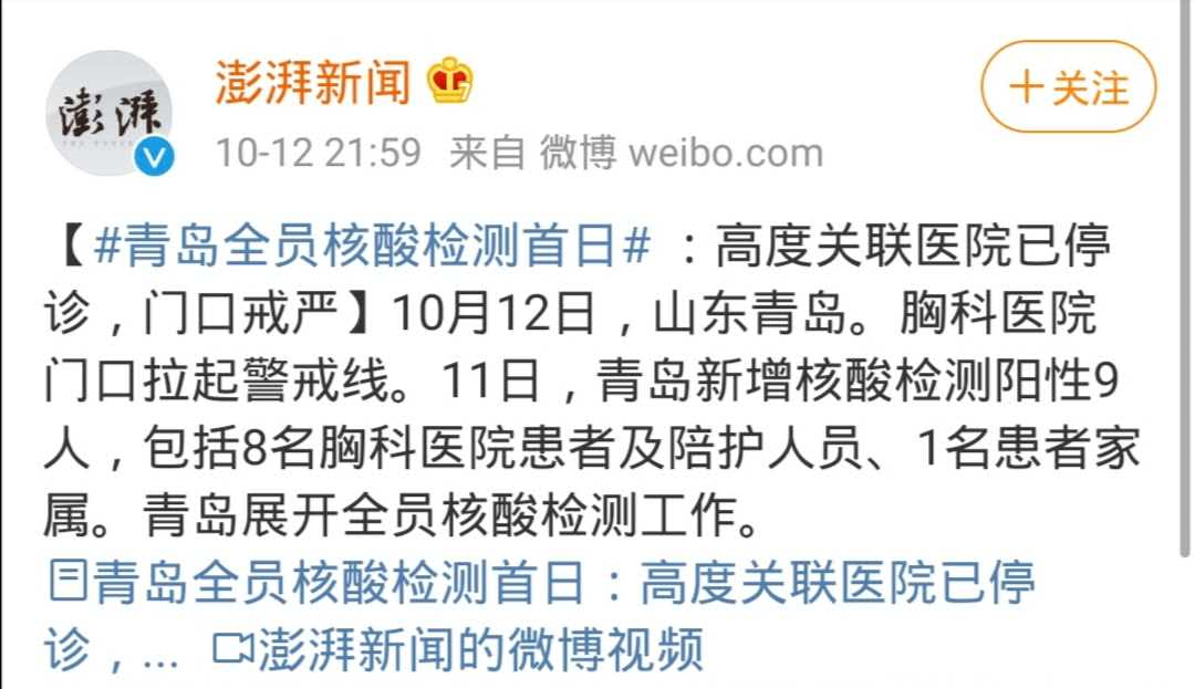 10月19日,国家统计局发布2020年前三季度经济数据。数据显示,由于新冠疫情的冲击,今年一季度GDP同比下降6.8%,但在二季度实现反弹增长3.2%,三季度增长幅度更是达到4.9%。整体来说,前三季度GDP同比增长0.7%,如果第四季度在维持住这个速度,那么全年的增速将会达到2%左右,基本契合了IMF对中国GDP增速的预计。11日当天,青岛连续确诊了3例无症状感染者,大规模流调、检测随即展开。