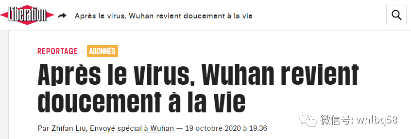 当地时间19日,法国《解放报》发表一篇报道,标题为“遭病毒攻击后,武汉逐渐恢复生气”。