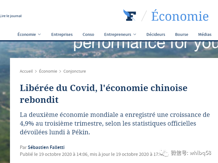 也是在19日,法国《费加罗报》发表一篇题为“从新冠疫情中解脱出来的中国经济正在反弹”报道了中国经济复苏的形势。