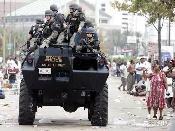 州国防警卫队的大兵是开着悍马架着机枪进入灾区的,为的就是维持社会秩序。直到8月30日,布什总统才缩短休假,五角大楼宣布派遣军舰前往救援。