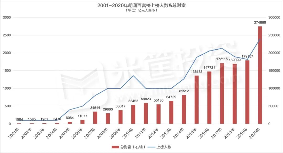 2020年的富豪榜单,共计2398人,比2019年增加了579人,可谓大幅扩张。