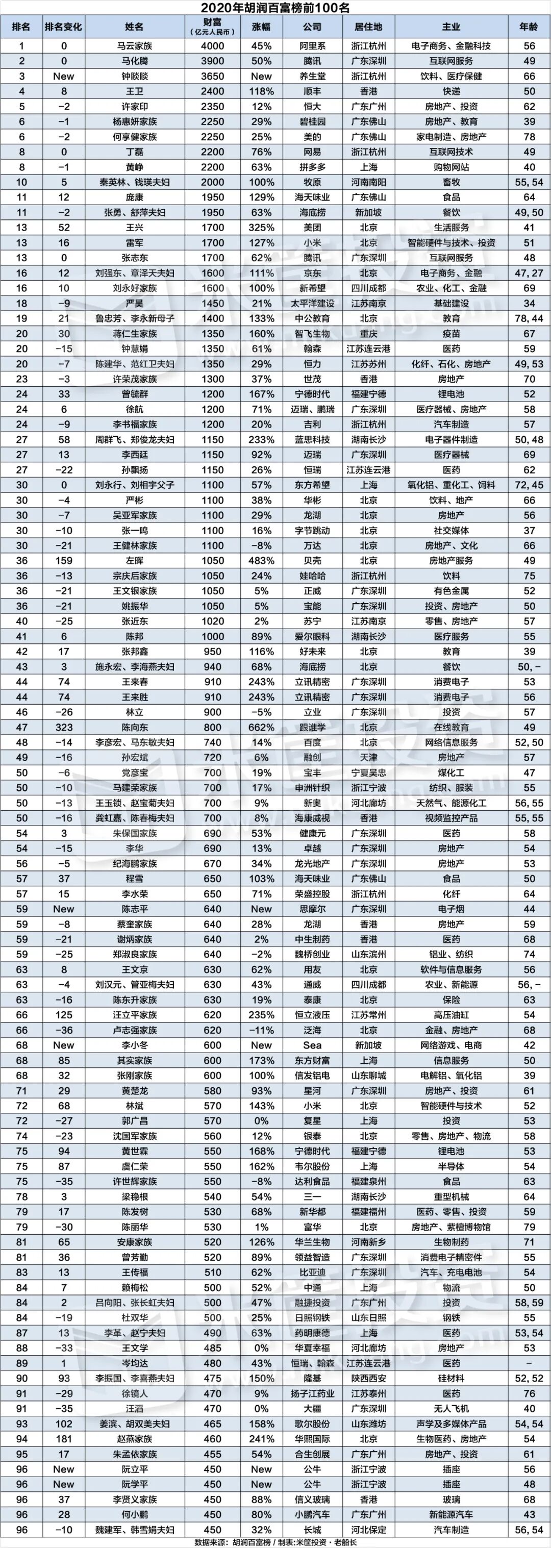 前些天,《2020胡润百富榜》发布,新一届的中国百大富豪亮相。