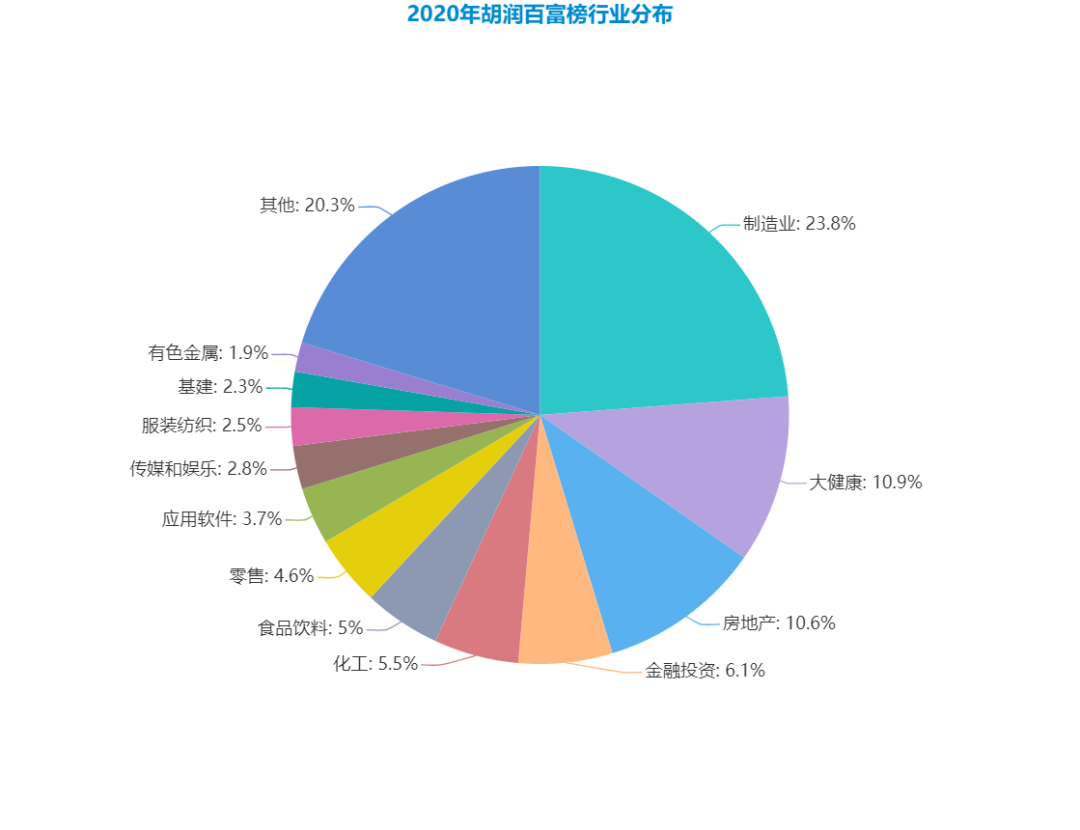 把医药纳入范畴的大健康行业,成为第二大行业。比如稳健医疗的李建全家族财富增长近10倍,重庆“疫苗大王”智飞生物的蒋仁生家族财富增长1.6倍,都足以看见疫情对经济的改变。