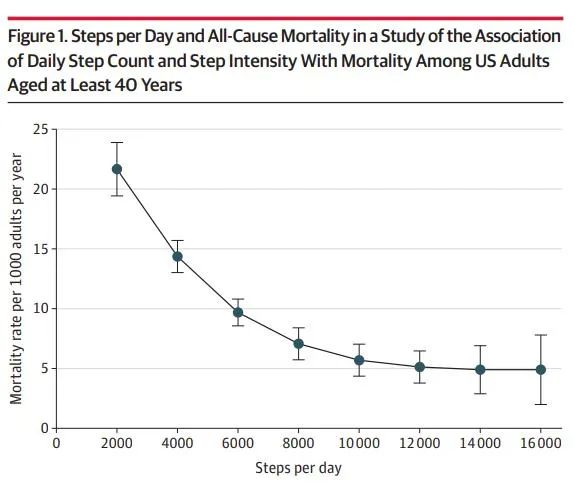 每天增加步数与降低全因死亡率的风险有关,其中每天步行8000步与降低全因死亡率51%相关。