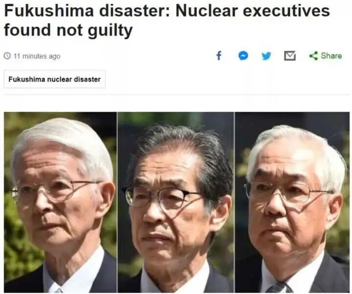 自2011年福岛核事故到今天,9年过去了,日本上到政府,下到东电公司,有一个人站出来承担责任了吗?有一个人被处置了吗?事故发生后,东京电力公司3名前高管被检方以“业务上过失致人死伤罪”起诉。但是到了2019年9月19日,东京地方法院宣判3人均无罪。