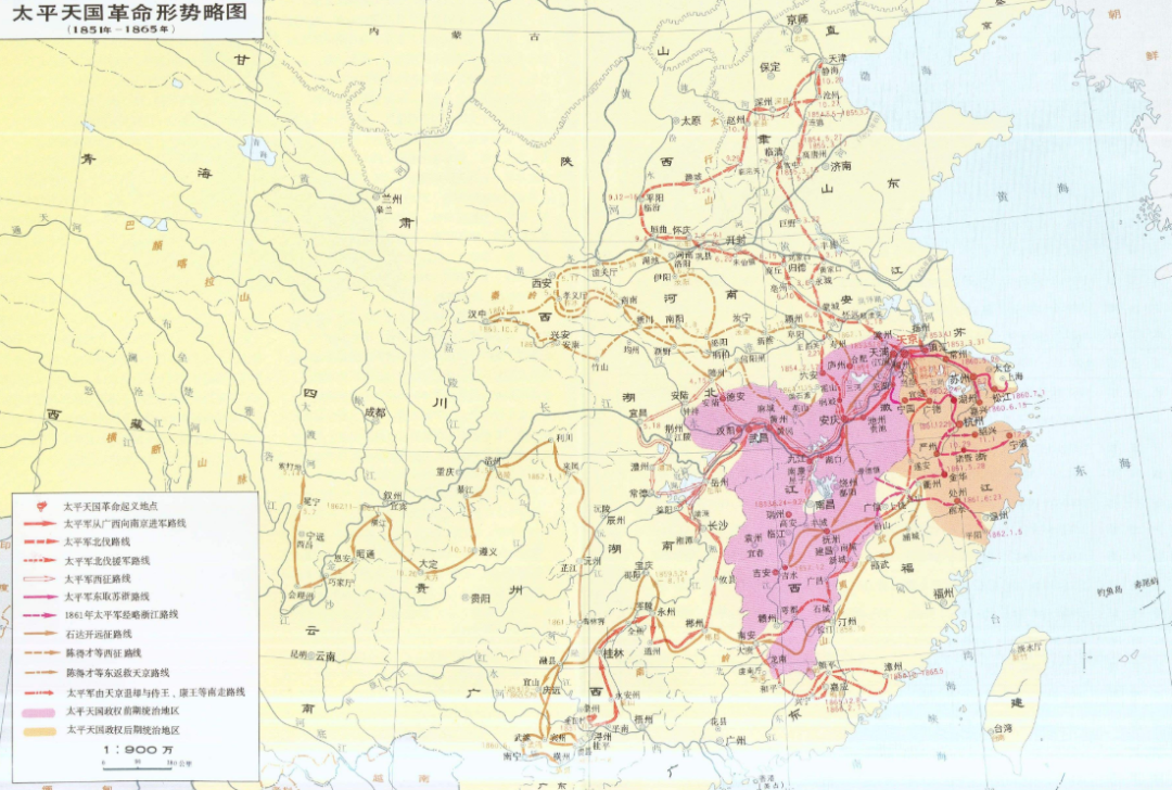在千万农民的无边怒火下,短短两年间,太平军便接连陷永安、战长沙、取武昌、定都南京,占据江南半壁!