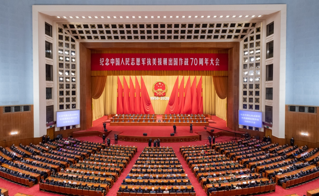 2020年10月23日,纪念中国人民志愿军抗美援朝出国作战70周年大会,在北京人民大会堂隆重举行。