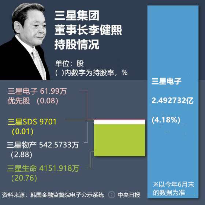 如果以韩国政府正在推进的《保险业法》为准,三星生命和三星火灾只能保留三星电子股票总额的3%,其余4亿股(价值约20万亿韩元)均需出售。由此,三星公司架构或发生较大变动。