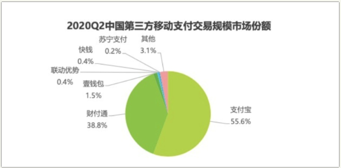 上图是最新一期移动支付市场份额占比,好家伙,丫一个人占了55.6%,这是绝对的垄断地位。