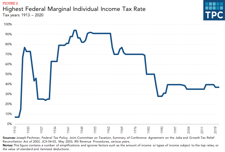 美国个人最高所得税税率由94%降至如今的37%