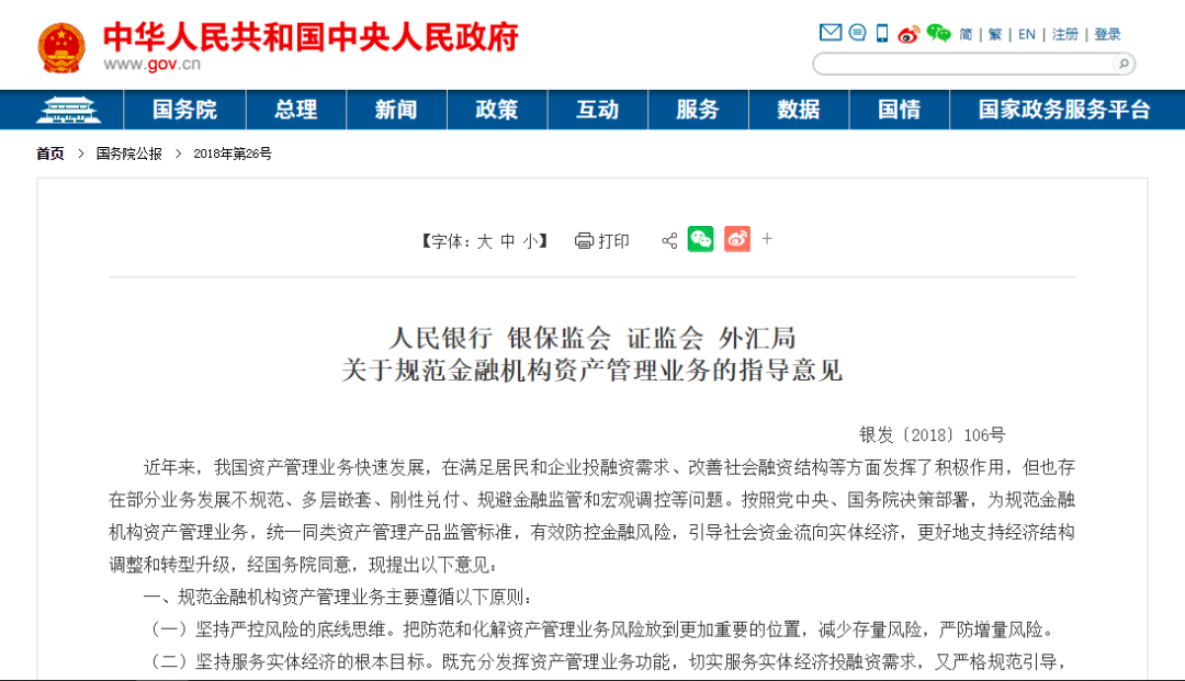 这份《中国人民银行、银监会、证监会、保监会、外汇局关于规范金融机构资产管理业务的指导意见(征求意见稿)》,现在已经落地。