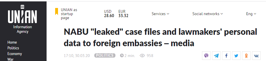 《NABU向外国大使馆“泄露”案件档案和议员的个人数据》