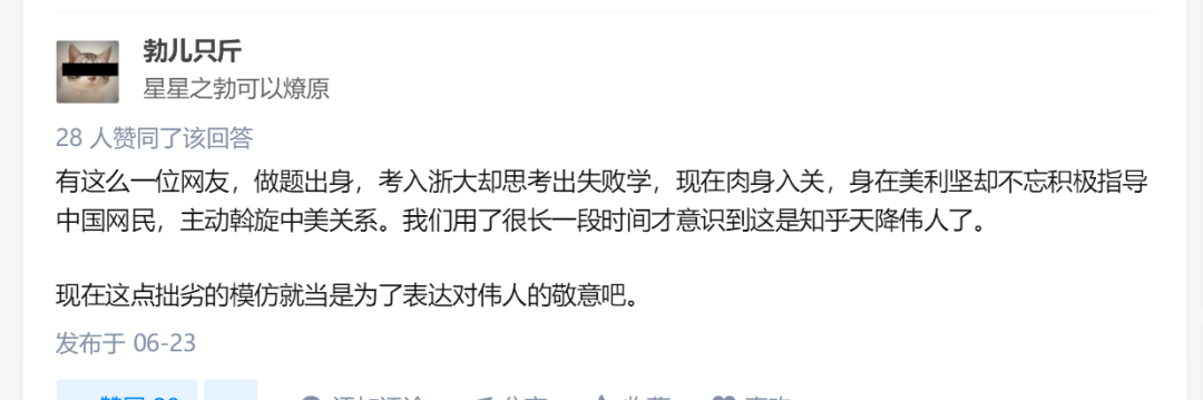 这类人投机性的表现还在于,他们虽然选择皈依美国,但还不忘从中国的现实和互联网上攫取利益,他们积极参与国内热点话题,挑动情绪,有时候甚至会伪装一下自己是个推崇公平和正义的人,然而只要实际看一看他们在做什么,就能明白这不过是为了吸引流量营造人设的投机行为罢了。