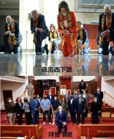 五月底,黑人嫌疑犯弗洛伊德遭遇跪杀,民主党乘机发动全国性示威游行,民主党头面人物拜登与佩洛西等人纷纷参加下跪运动。