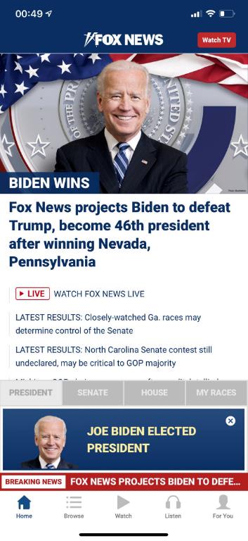 我关注的是共和党/右翼的宣传机器:FOX News。FOX略晚一丁点,但很快接受了Biden获胜的事实。