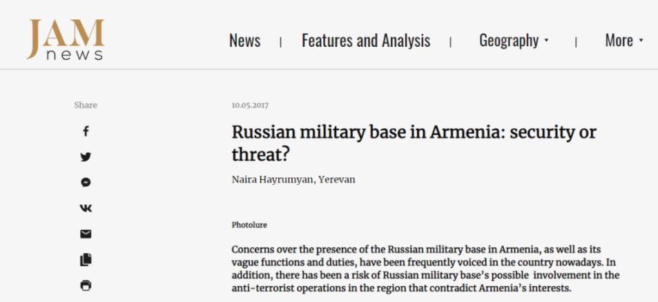 《俄罗斯在亚美尼亚的军事基地:安全还是威胁?》