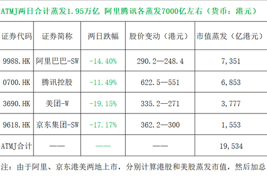 受此消息影响,以ATMJ为代表的互联网巨头股价集体跳水,两天市值蒸发近2万亿元。