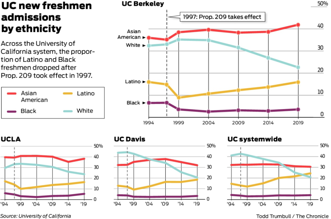 读者可以先看看Prop 209推出后对加州大学体系的结果: