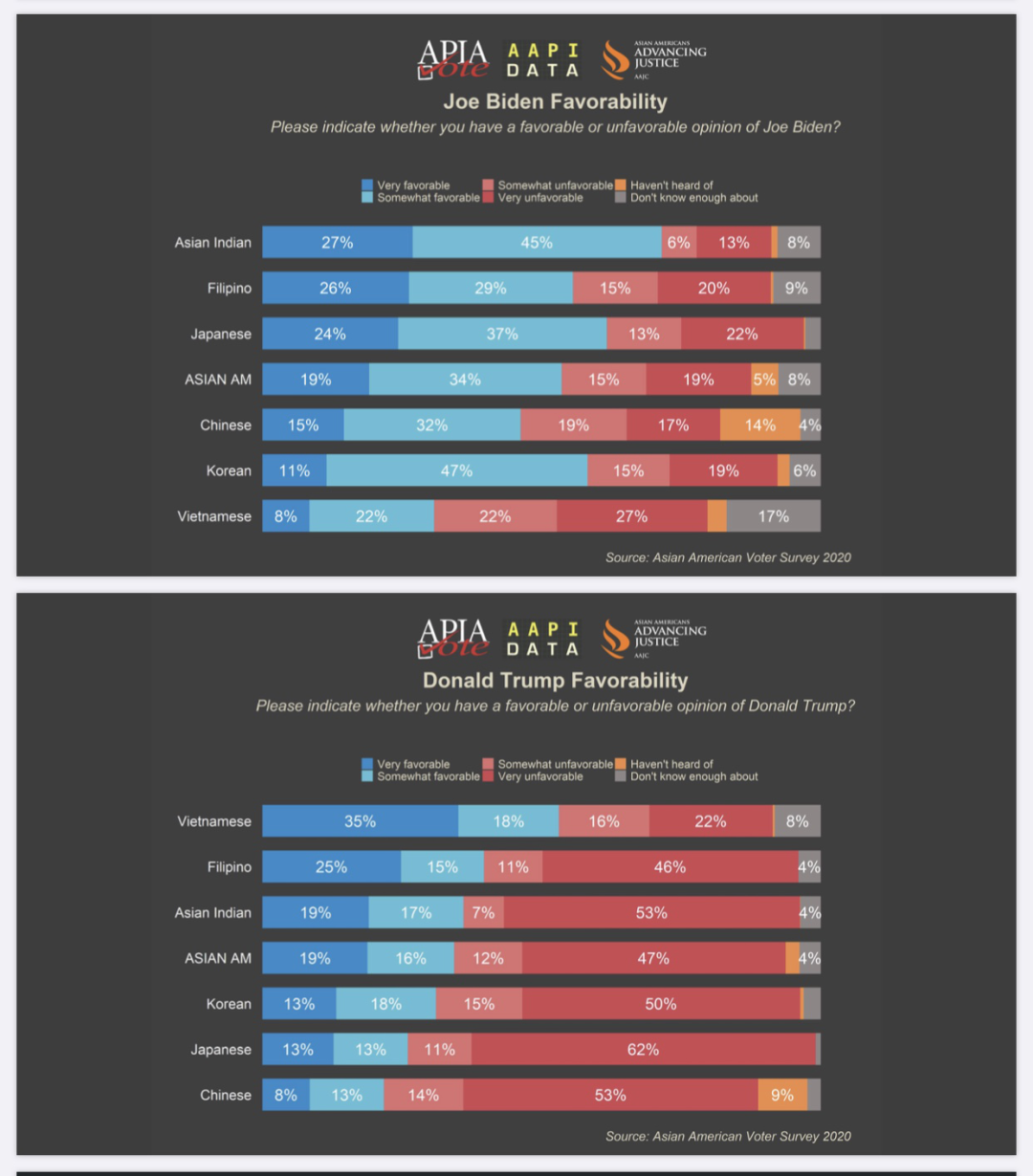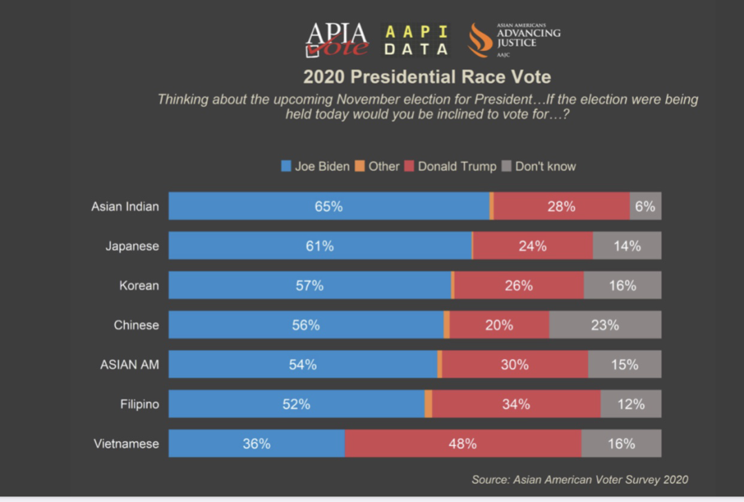 下面几图是针对2020年大选的民调,对象为亚裔美国人。