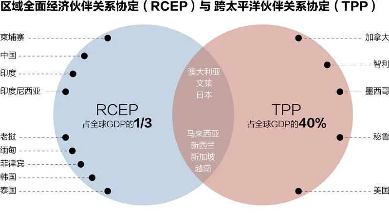更关键的是,RCEP抢先尘埃落定,为中国应对美国主导的TPP(跨太平洋伙伴关系协定)提供抗衡力量。