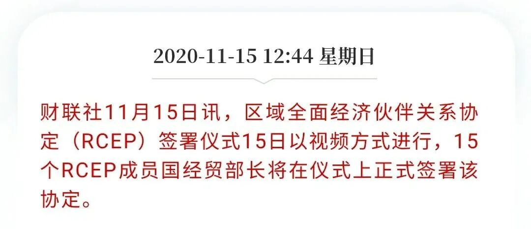 11月15日,酝酿已久的《区域全面经济伙伴关系协定》(RCEP)终于正式签署。